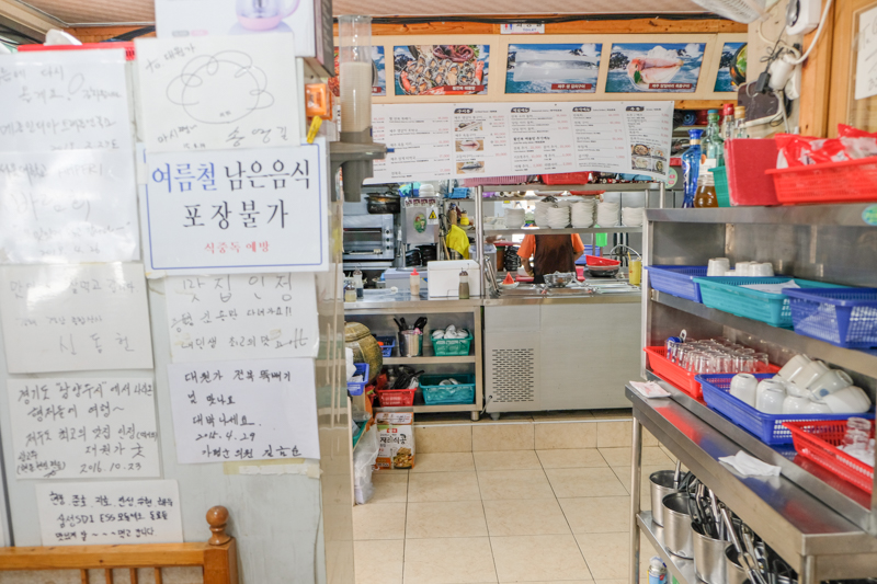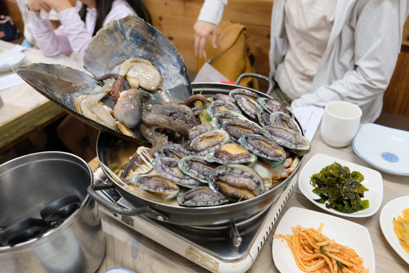 老媽曾經在幾十年前來過濟州島旅遊,她跟我們分享最難忘的濟州島食物就是「鮑魚粥」,聽她回想起濟州島的鮑魚粥,擁有滿滿的新鮮海味卻完全沒有腥味,說的我們口水都要流滿地,虎妹這次特地找了這家鮑魚海鮮鍋專門店,要讓媽媽再重溫當年在濟州島吃「鮑魚粥」的回憶。雖然店門口不太起眼,海鮮的生猛程度也讓我留下深刻的記憶。