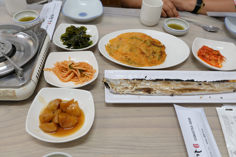 ▼烤白帶魚、煎餅、海帶與泡菜,雖不算豐富,但也是韓式小菜的經典。
